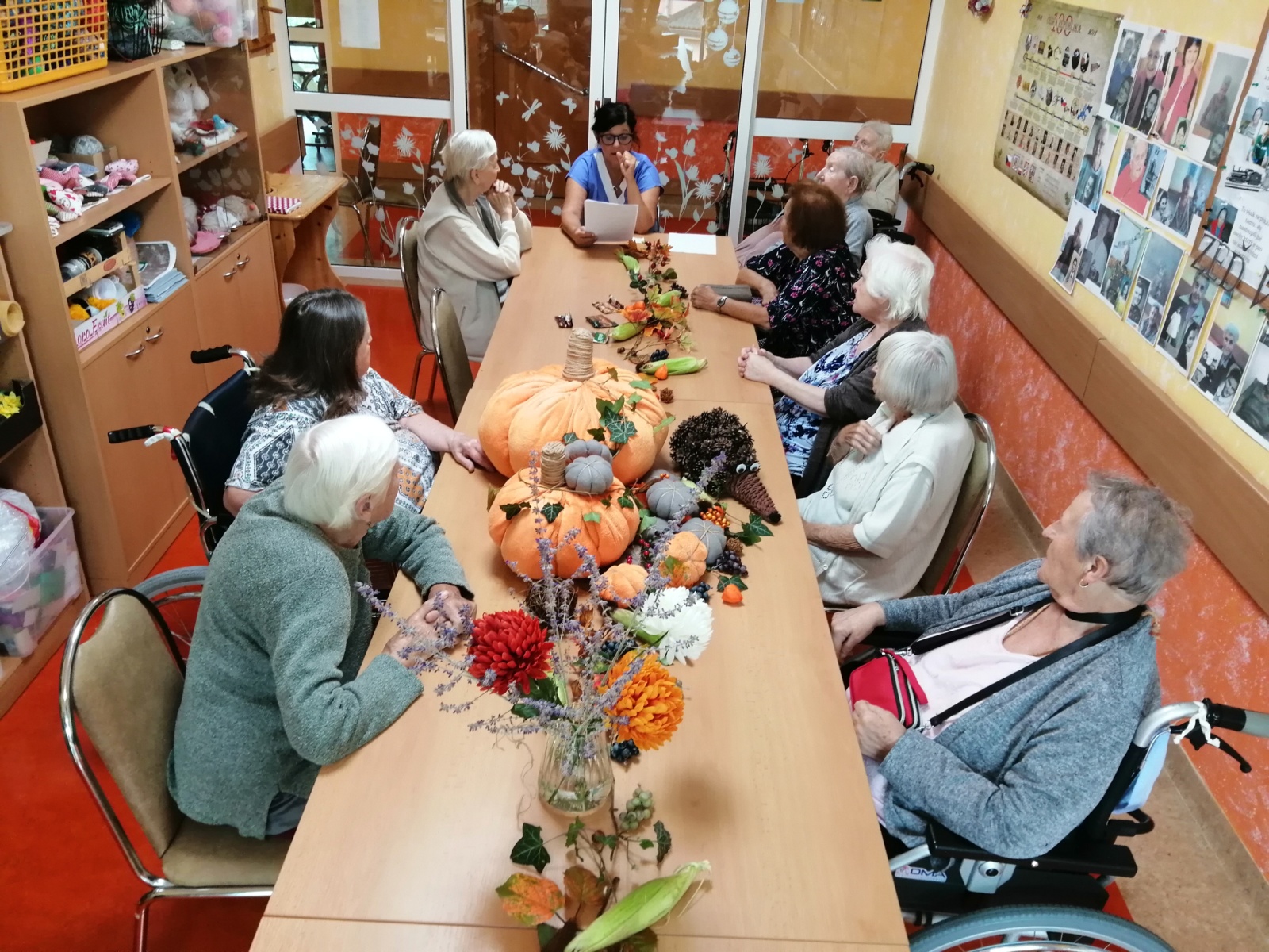 Podzim klepe na dveře, a tak jsme společně s uživateli vyzdobili zařízení do podzimních tónů. Využili jsme přírodní materiály typické pro toto roční období – barevné listí, větvičky a ručně vyrobené dekorativní dýně. Nyní můžete sami posoudit, jak se nám výzdoba povedla.